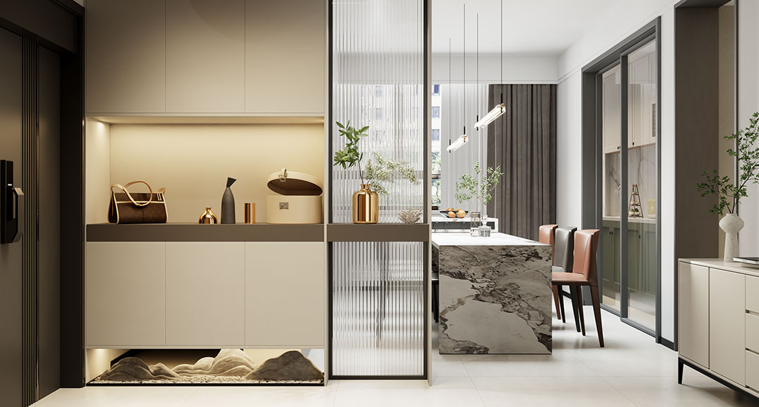 銀澳花園120㎡兩室一廳玄關(guān)輕奢風格裝修案例效果圖