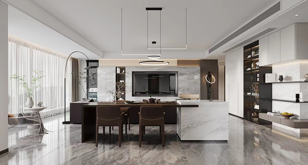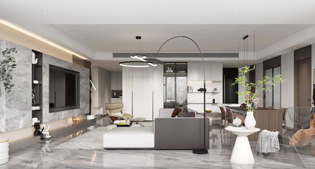 以簡潔、清晰和功能性為特征的室內(nèi)設(shè)計(jì);它主要強(qiáng)調(diào)了空間的簡化和精煉,追求線條簡單、空間通透、色彩明亮、材質(zhì)自然等特點(diǎn),注重形式與功能的結(jié)合。他們希望有一個時(shí)尚、現(xiàn)代的功能性空間,在整個空間的設(shè)計(jì)上用了暖灰調(diào)來與簡約的線條感來相呼應(yīng),能改造出一個通透、流暢的空間感。