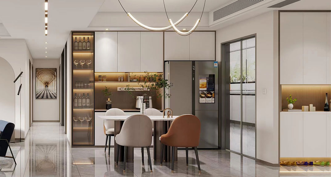 以簡潔、清晰和功能性為特征的室內(nèi)設(shè)計;它主要強調(diào)了空間的簡化和精煉,追求線條簡單、空間通透、色彩明亮、材質(zhì)自然等特點,注重形式與功能的結(jié)合。他們希望有一個時尚、現(xiàn)代的功能性空間,在整個空間的設(shè)計上用了暖灰調(diào)來與簡約的線條感來相呼應(yīng),能改造出一個通透、流暢的空間感。
