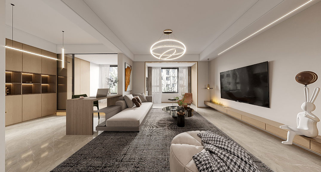 萊頓小鎮(zhèn)140㎡四室兩廳客廳現(xiàn)代風格裝修案例效果圖