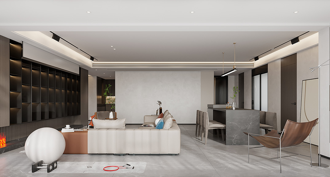 本案設(shè)計(jì)風(fēng)格為意式輕奢,拒絕了濃烈的色彩,以一種簡(jiǎn)單、純粹的設(shè)計(jì)語(yǔ)言,回歸生活的本質(zhì),留存給居住者更多生活想象的空間。 整體空間灰橙色、駝色、與淺暖灰色調(diào)展現(xiàn)輕奢低調(diào)的高級(jí)質(zhì)感,簡(jiǎn)約時(shí)尚的家具又增添了一份現(xiàn)代感,重新梳理了空間功能和尺寸,客廳陽(yáng)臺(tái)一體化設(shè)計(jì),最大限度引入自然光,高級(jí)灰搭配中性色系木飾面,打造一個(gè)舒適的高品質(zhì)空間。在空間設(shè)計(jì)與色彩配搭上,精準(zhǔn)地把控節(jié)奏,用設(shè)計(jì)表達(dá)空間的包容性,更多的是通過(guò)人性化思考,創(chuàng)造一個(gè)功能性完整的舒適生活空間。大塊的木飾面、金屬元素和燈 光的碰撞搭配,凸顯出強(qiáng)大張力,共同打造出意式輕奢腔調(diào)十足的時(shí)尚與質(zhì)感。