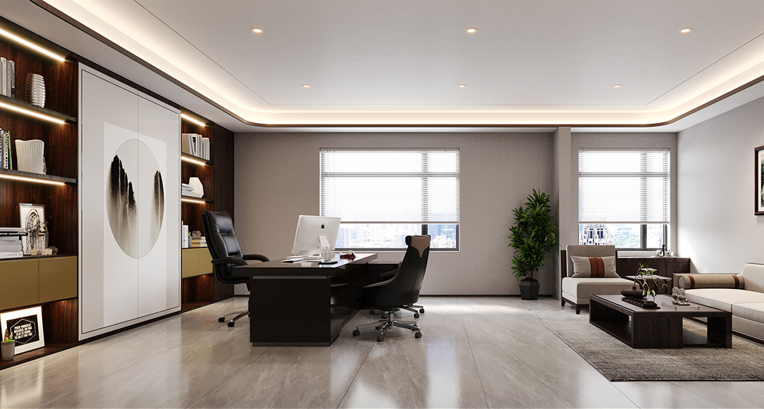 河山別墅300㎡別墅書房新中式風(fēng)格裝修案例效果圖.jpg