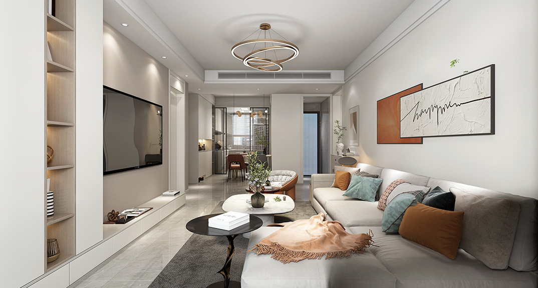海青公寓130㎡三室兩廳現(xiàn)代簡約風(fēng)格裝修案例效果圖