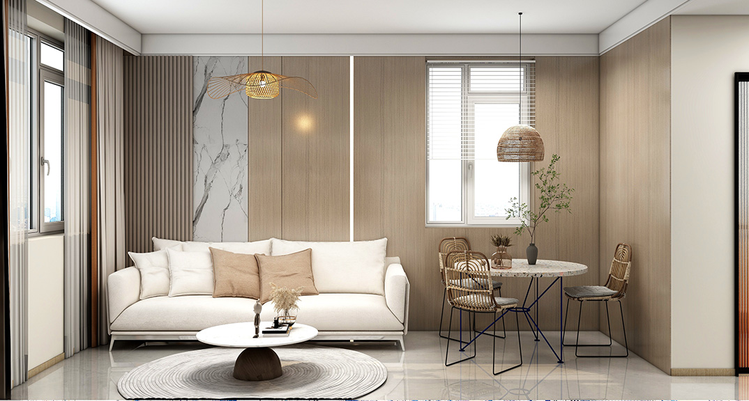 以簡潔、清晰和功能性為特征的室內(nèi)設(shè)計;它主要強調(diào)了空間的簡化和精煉,追求線條簡單、空間通透、色彩明亮、材質(zhì)自然等特點,注重形式與功能的結(jié)合。他們希望有一個時尚、現(xiàn)代的功能性空間,在整個空間的設(shè)計上用了暖灰調(diào)來與簡約的線條感來相呼應(yīng),能改造出一個通透、流暢的空間感。