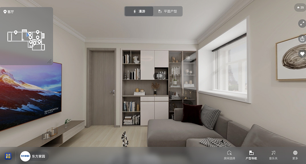 圓弧形狀的電視背景墻,懸空的地臺(tái)設(shè)計(jì),簡(jiǎn)單大氣極具創(chuàng)意。豎排的陳列柜,放上主人的潮玩單品再合適不過了。循著空間動(dòng)線布局燈光,同時(shí)以線性燈架構(gòu),表達(dá)空間想訴說的層次。主燈、筒燈、吊燈、燈帶的相輔相成,既劃分了空間的場(chǎng)域,又增添了彼此的互動(dòng)感。