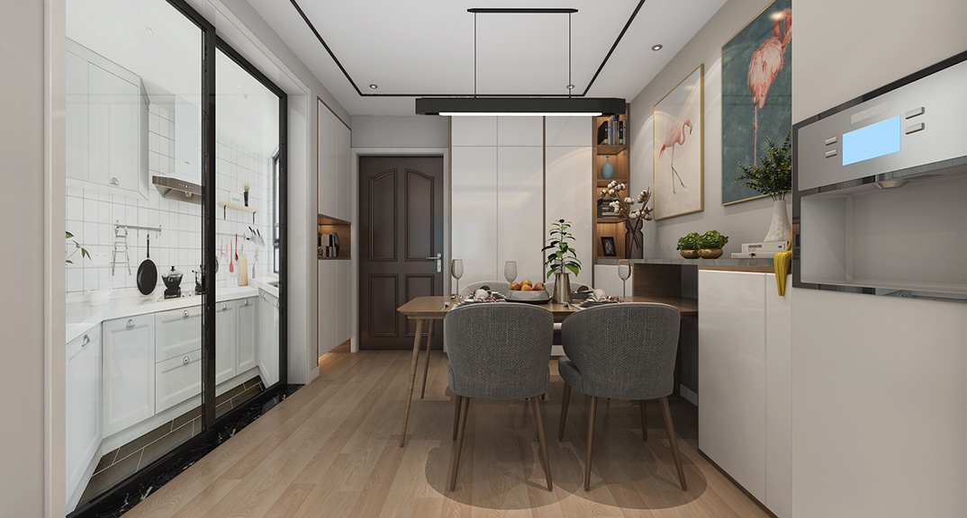 壹號學府152㎡三室兩廳餐廳現(xiàn)代風格裝修案例效果圖