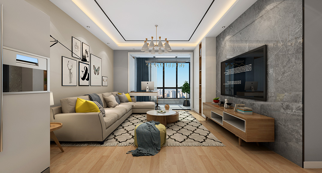 壹號學府152㎡三室兩廳客廳現(xiàn)代風格裝修案例效果圖