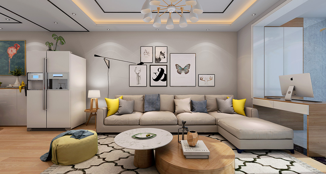 壹號學府152㎡三室兩廳客廳沙發(fā)現(xiàn)代風格裝修案例效果圖