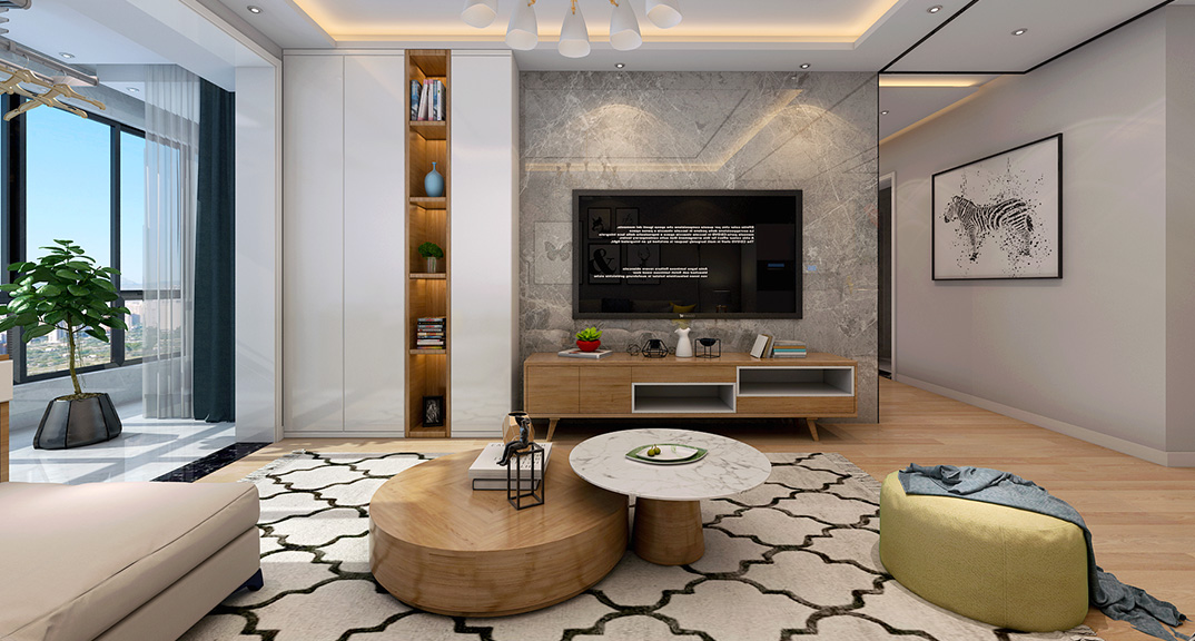 壹號學府152㎡三室兩廳客廳電視現(xiàn)代風格裝修案例效果圖