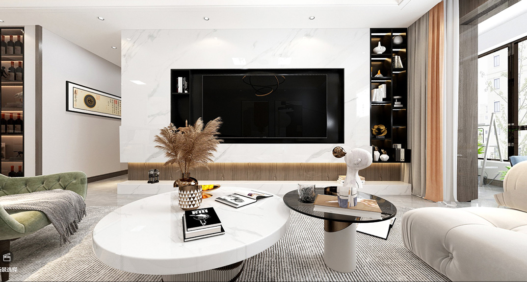 影都壹號127㎡三室兩廳意式輕奢風(fēng)格裝修案例效果圖