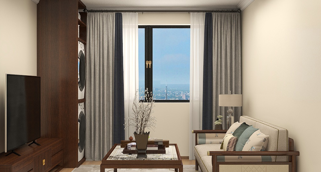 保利時代88㎡兩室兩廳客廳新中式風(fēng)格戶型研發(fā)案例
