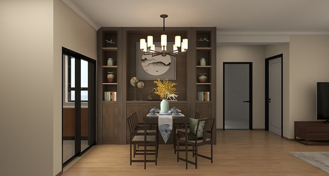 保利時代88㎡兩室兩廳餐廳新中式風(fēng)格戶型研發(fā)案例