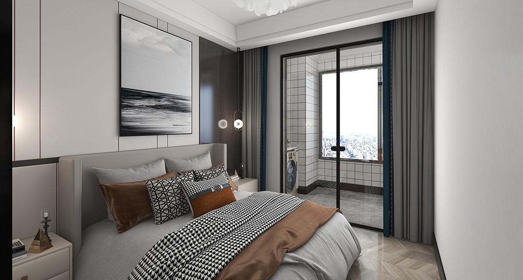 保利時代98㎡三室兩廳臥室輕奢風(fēng)格戶型研發(fā)效果圖