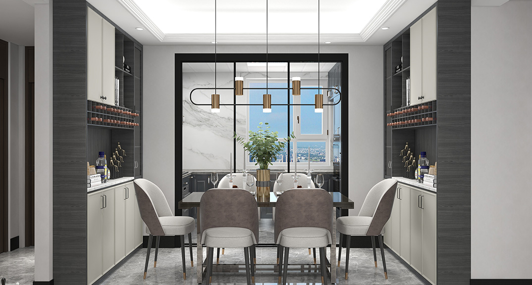 保利時代98㎡三室兩廳餐廳輕奢風(fēng)格戶型研發(fā)效果圖