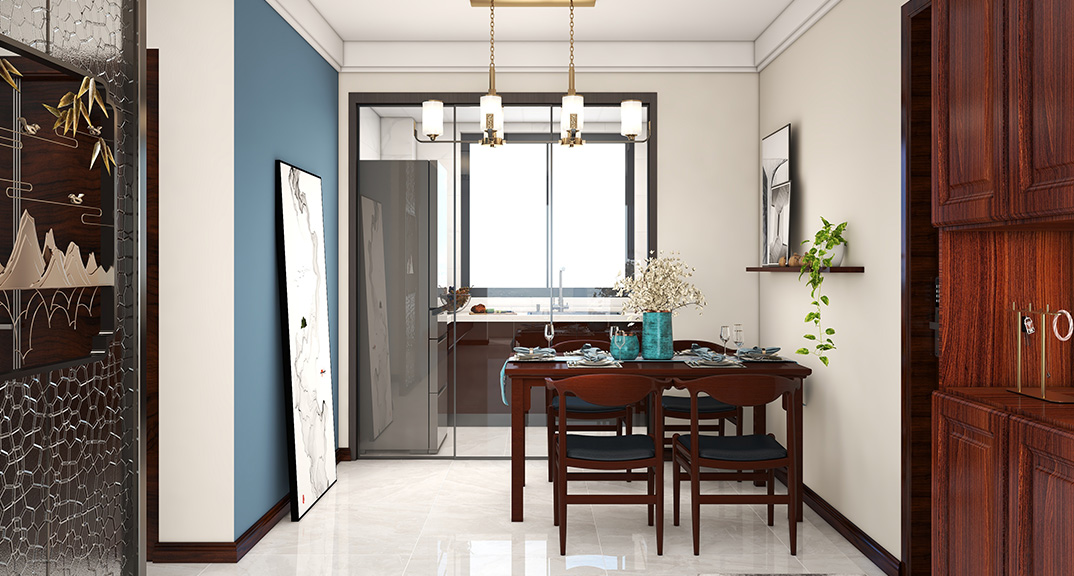 保利時代98㎡三室兩廳餐廳中式風(fēng)格戶型研發(fā)效果圖