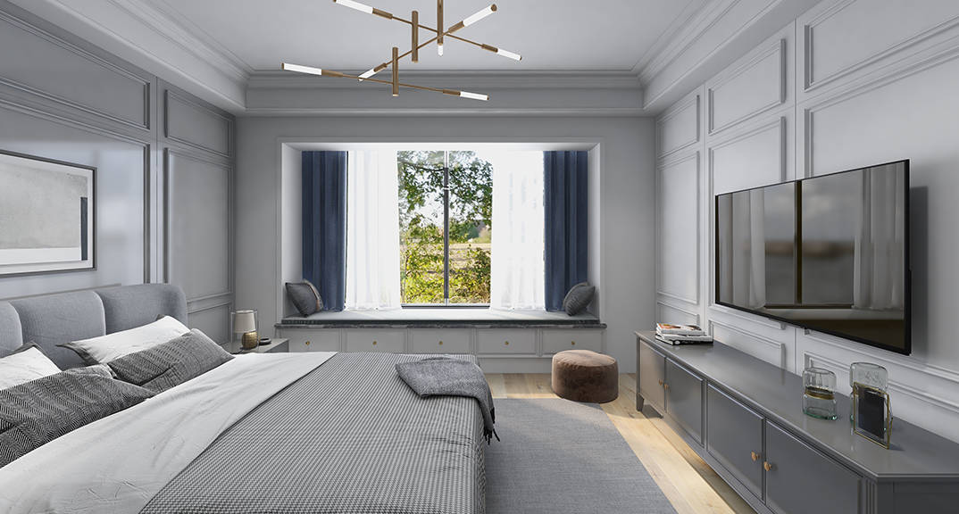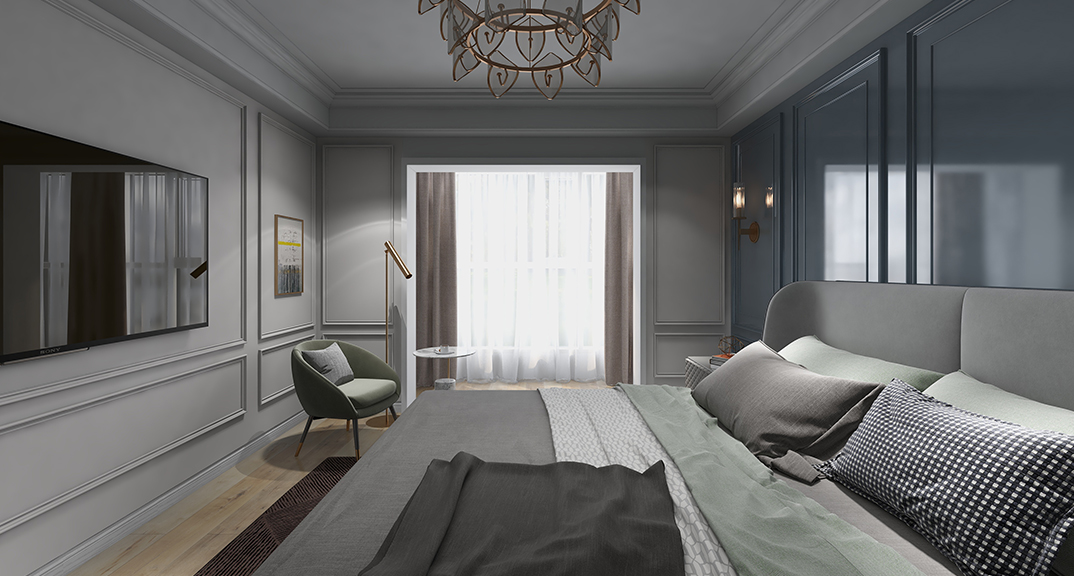 保利時代110㎡三室兩廳美式輕奢風(fēng)格戶型研發(fā)效果圖