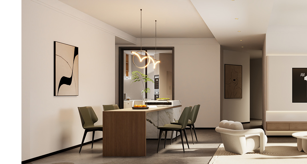本案設(shè)計(jì)風(fēng)格為意式輕奢,拒絕了濃烈的色彩,以一種簡單、純粹的設(shè)計(jì)語言,回歸生活的本質(zhì),留存給居住者更多生活想象的空間。 整體空間灰橙色、駝色、與淺暖灰色調(diào)展現(xiàn)輕奢低調(diào)的高級(jí)質(zhì)感,簡約時(shí)尚的家具又增添了一份現(xiàn)代感,重新梳理了空間功能和尺寸,客廳陽臺(tái)一體化設(shè)計(jì),最大限度引入自然光,高級(jí)灰搭配中性色系木飾面,打造一個(gè)舒適的高品質(zhì)空間。在空間設(shè)計(jì)與色彩配搭上,精準(zhǔn)地把控節(jié)奏,用設(shè)計(jì)表達(dá)空間的包容性,更多的是通過人性化思考,創(chuàng)造一個(gè)功能性完整的舒適生活空間。大塊的木飾面、金屬元素和燈 光的碰撞搭配,凸顯出強(qiáng)大張力,共同打造出意式輕奢腔調(diào)十足的時(shí)尚與質(zhì)感。