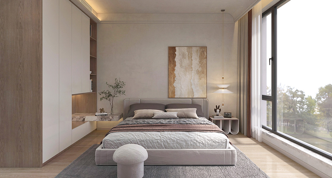 影都壹號127㎡三室兩廳臥室意式輕奢風(fēng)格效果圖