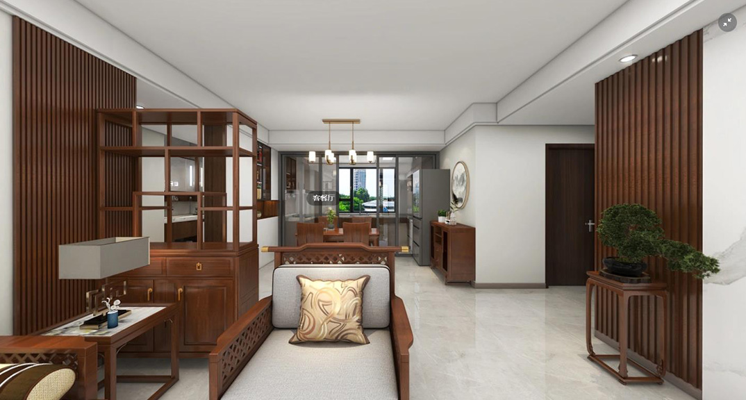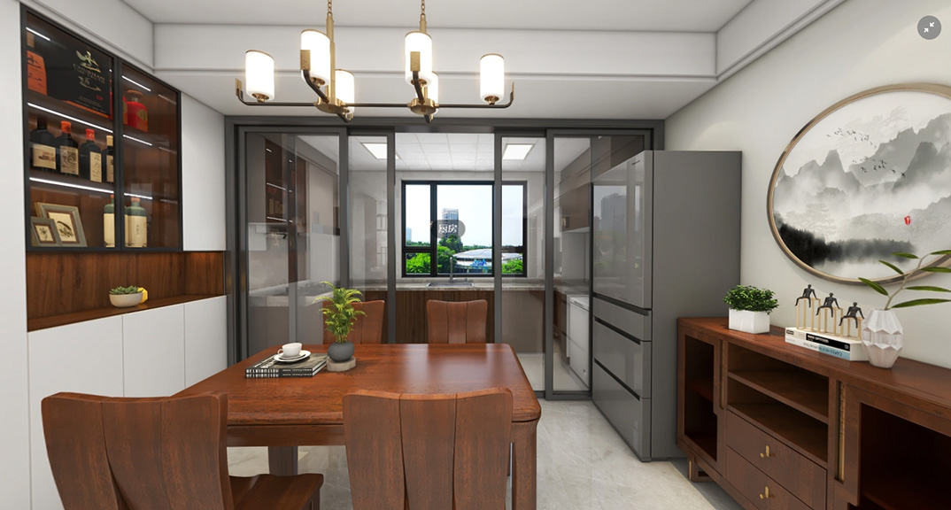 安泰悅湖灣135㎡三室兩廳客餐廳中式簡約風格裝修案例效果圖