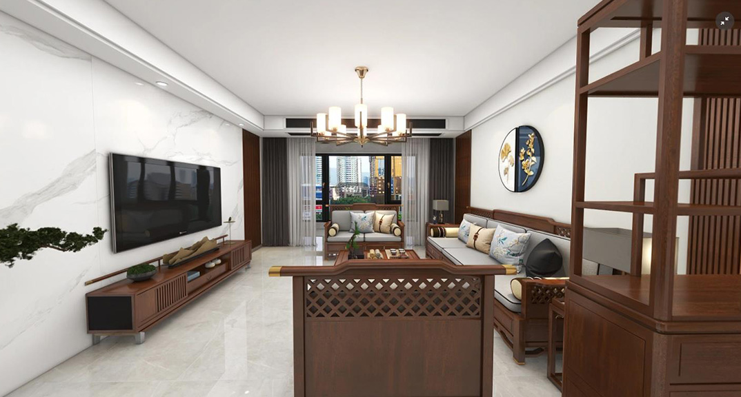 安泰悅湖灣135㎡三室兩廳客廳中式簡約風格裝修案例效果圖