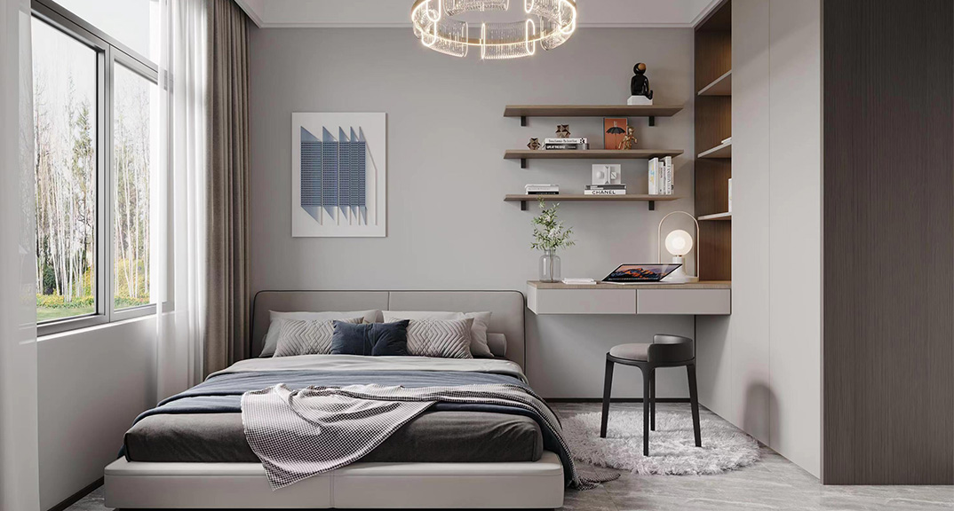 巴黎名城115㎡三室兩廳臥室現(xiàn)代簡(jiǎn)約風(fēng)格裝修案例效果圖