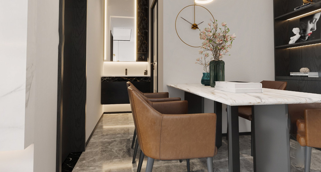 以簡潔、清晰和功能性為特征的室內(nèi)設(shè)計;它主要強調(diào)了空間的簡化和精煉,追求線條簡單、空間通透、色彩明亮、材質(zhì)自然等特點,注重形式與功能的結(jié)合。他們希望有一個時尚、現(xiàn)代的功能性空間,在整個空間的設(shè)計上用了暖灰調(diào)來與簡約的線條感來相呼應(yīng),能改造出一個通透、流暢的空間感。