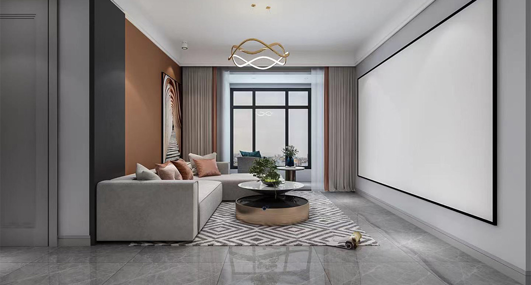 本案設(shè)計(jì)風(fēng)格為意式輕奢,拒絕了濃烈的色彩,以一種簡(jiǎn)單、純粹的設(shè)計(jì)語(yǔ)言,回歸生活的本質(zhì),留存給居住者更多生活想象的空間。 整體空間灰橙色、駝色、與淺暖灰色調(diào)展現(xiàn)輕奢低調(diào)的高級(jí)質(zhì)感,簡(jiǎn)約時(shí)尚的家具又增添了一份現(xiàn)代感,重新梳理了空間功能和尺寸,客廳陽(yáng)臺(tái)一體化設(shè)計(jì),最大限度引入自然光,高級(jí)灰搭配中性色系木飾面,打造一個(gè)舒適的高品質(zhì)空間。在空間設(shè)計(jì)與色彩配搭上,精準(zhǔn)地把控節(jié)奏,用設(shè)計(jì)表達(dá)空間的包容性,更多的是通過(guò)人性化思考,創(chuàng)造一個(gè)功能性完整的舒適生活空間。大塊的木飾面、金屬元素和燈 光的碰撞搭配,凸顯出強(qiáng)大張力,共同打造出意式輕奢腔調(diào)十足的時(shí)尚與質(zhì)感。