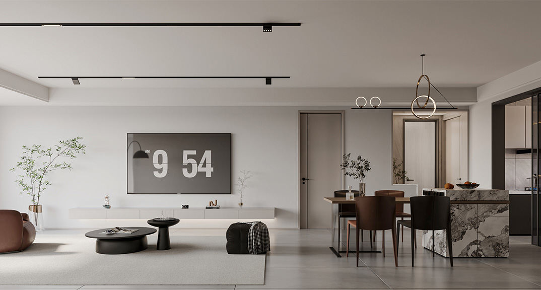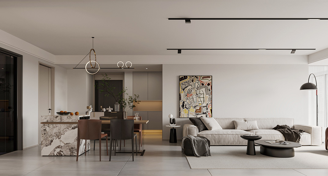 以簡潔、清晰和功能性為特征的室內(nèi)設(shè)計;它主要強(qiáng)調(diào)了空間的簡化和精煉,追求線條簡單、空間通透、色彩明亮、材質(zhì)自然等特點(diǎn),注重形式與功能的結(jié)合。他們希望有一個時尚、現(xiàn)代的功能性空間,在整個空間的設(shè)計上用了暖灰調(diào)來與簡約的線條感來相呼應(yīng),能改造出一個通透、流暢的空間感。