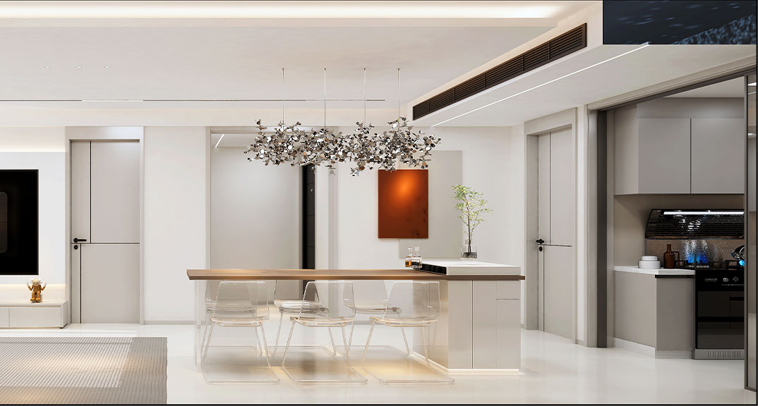 以簡潔、清晰和功能性為特征的室內(nèi)設(shè)計(jì);它主要強(qiáng)調(diào)了空間的簡化和精煉,追求線條簡單、空間通透、色彩明亮、材質(zhì)自然等特點(diǎn),注重形式與功能的結(jié)合。他們希望有一個(gè)時(shí)尚、現(xiàn)代的功能性空間,在整個(gè)空間的設(shè)計(jì)上用了暖灰調(diào)來與簡約的線條感來相呼應(yīng),能改造出一個(gè)通透、流暢的空間感。
