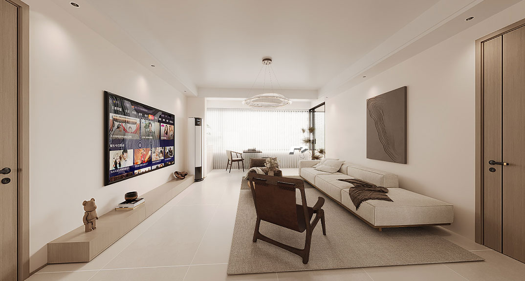 以現(xiàn)代風(fēng)格為主調(diào),主要色彩是米色、淺咖色、白色。在總體布局方面滿足寬敞明亮的需求,注重居室空間的布局與使用功能的完美結(jié)合。整體簡約又不失設(shè)計(jì)感,開放式布局空間聯(lián)通,動線流暢??蛷d米灰色系的沙發(fā),造型簡約,搭配材質(zhì)柔軟的軟裝,使客廳充滿閑話自在的空間氛圍。