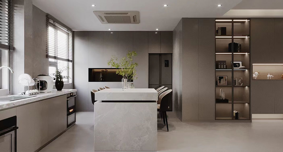 以簡(jiǎn)潔、清晰和功能性為特征的室內(nèi)設(shè)計(jì);它主要強(qiáng)調(diào)了空間的簡(jiǎn)化和精煉,追求線條簡(jiǎn)單、空間通透、色彩明亮、材質(zhì)自然等特點(diǎn),注重形式與功能的結(jié)合。他們希望有一個(gè)時(shí)尚、現(xiàn)代的功能性空間,在整個(gè)空間的設(shè)計(jì)上用了暖灰調(diào)來(lái)與簡(jiǎn)約的線條感來(lái)相呼應(yīng),能改造出一個(gè)通透、流暢的空間感。