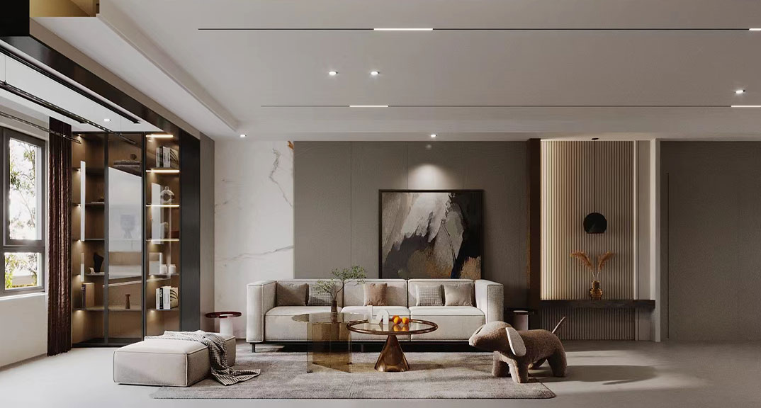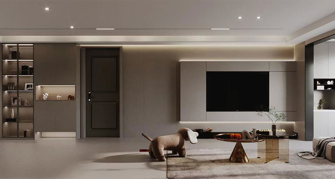 本案設(shè)計(jì)風(fēng)格為意式輕奢,拒絕了濃烈的色彩,以一種簡(jiǎn)單、純粹的設(shè)計(jì)語(yǔ)言,回歸生活的本質(zhì),留存給居住者更多生活想象的空間。 整體空間灰橙色、駝色、與淺暖灰色調(diào)展現(xiàn)輕奢低調(diào)的高級(jí)質(zhì)感,簡(jiǎn)約時(shí)尚的家具又增添了一份現(xiàn)代感,重新梳理了空間功能和尺寸,客廳陽(yáng)臺(tái)一體化設(shè)計(jì),最大限度引入自然光,高級(jí)灰搭配中性色系木飾面,打造一個(gè)舒適的高品質(zhì)空間。在空間設(shè)計(jì)與色彩配搭上,精準(zhǔn)地把控節(jié)奏,用設(shè)計(jì)表達(dá)空間的包容性,更多的是通過(guò)人性化思考,創(chuàng)造一個(gè)功能性完整的舒適生活空間。大塊的木飾面、金屬元素和燈 光的碰撞搭配,凸顯出強(qiáng)大張力,共同打造出意式輕奢腔調(diào)十足的時(shí)尚與質(zhì)感。