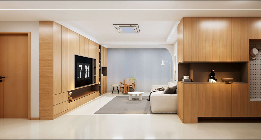 以簡潔、清晰和功能性為特征的室內(nèi)設(shè)計;它主要強調(diào)了空間的簡化和精煉,追求線條簡單、空間通透、色彩明亮、材質(zhì)自然等特點,注重形式與功能的結(jié)合。他們希望有一個時尚、現(xiàn)代的功能性空間,在整個空間的設(shè)計上用了暖灰調(diào)來與簡約的線條感來相呼應(yīng),能改造出一個通透、流暢的空間感。