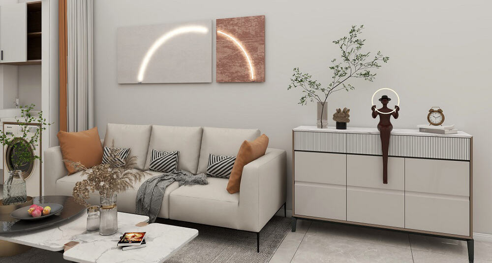 本案設(shè)計(jì)風(fēng)格為意式輕奢,拒絕了濃烈的色彩,以一種簡(jiǎn)單、純粹的設(shè)計(jì)語(yǔ)言,回歸生活的本質(zhì),留存給居住者更多生活想象的空間。 整體空間灰橙色、駝色、與淺暖灰色調(diào)展現(xiàn)輕奢低調(diào)的高級(jí)質(zhì)感,簡(jiǎn)約時(shí)尚的家具又增添了一份現(xiàn)代感,重新梳理了空間功能和尺寸,客廳陽(yáng)臺(tái)一體化設(shè)計(jì),最大限度引入自然光,高級(jí)灰搭配中性色系木飾面,打造一個(gè)舒適的高品質(zhì)空間。在空間設(shè)計(jì)與色彩配搭上,精準(zhǔn)地把控節(jié)奏,用設(shè)計(jì)表達(dá)空間的包容性,更多的是通過(guò)人性化思考,創(chuàng)造一個(gè)功能性完整的舒適生活空間。大塊的木飾面、金屬元素和燈 光的碰撞搭配,凸顯出強(qiáng)大張力,共同打造出意式輕奢腔調(diào)十足的時(shí)尚與質(zhì)感。