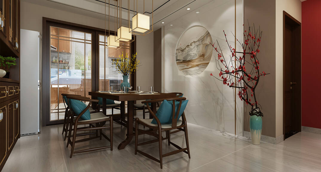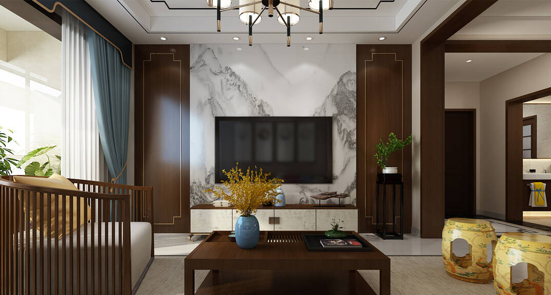海信悅?cè)A里90㎡兩室一廳現(xiàn)代中式風格案例效果圖