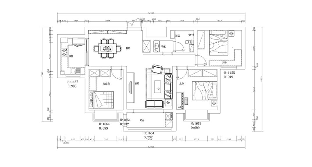 理工嘉園117平米三居室現(xiàn)代風格設計案例
