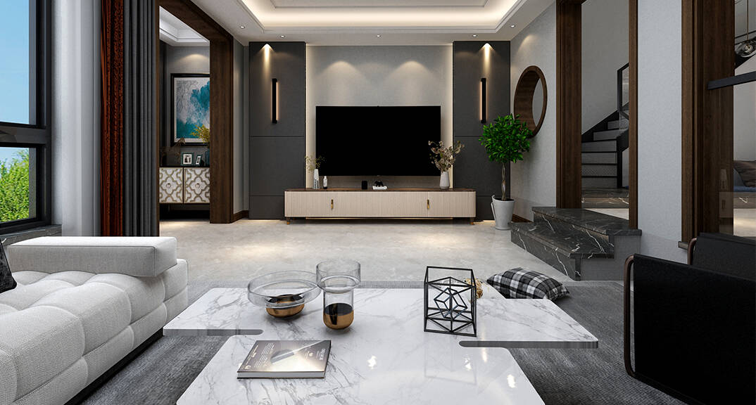青島鰲山衛(wèi) 別墅 210㎡ 簡(jiǎn)約風(fēng)格電視背景墻裝修效果圖
