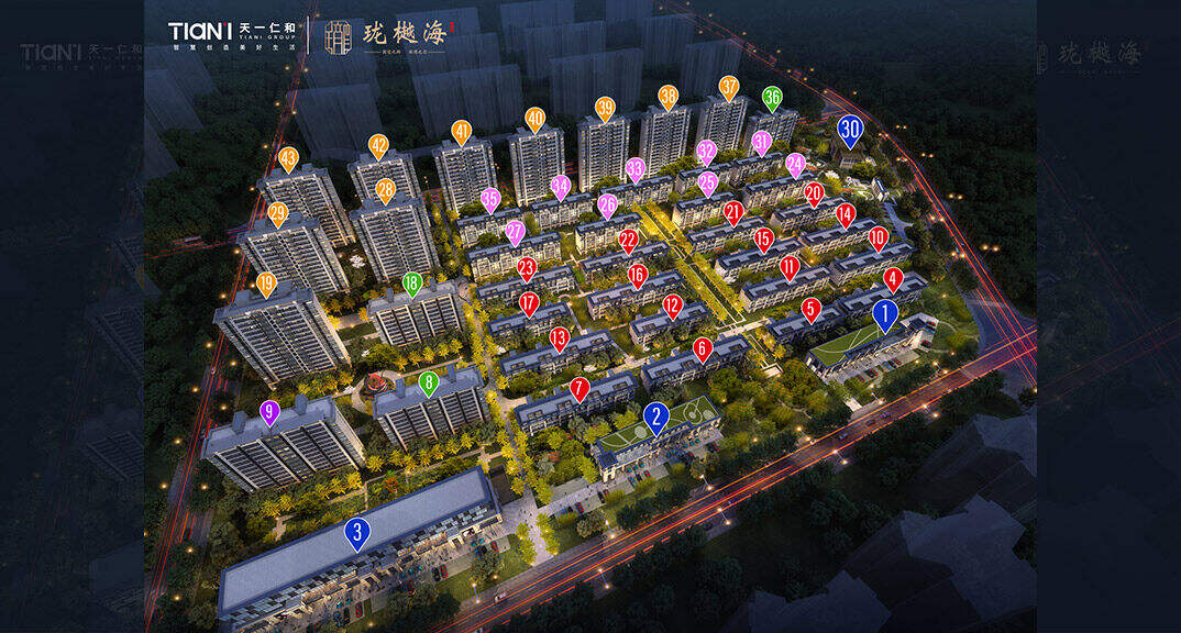 海天一仁和瓏樾海位于膠州灣與女姑山之間,南側(cè)600米即為3.8公里海邊木棧道??芍^是瓏樾依山著,云霞出瀚海。整個(gè)小區(qū)共有43棟樓,產(chǎn)品涵蓋裝修小高層、裝修洋房、疊拼別墅等三類產(chǎn)品。項(xiàng)目總共占地面積10.4萬(wàn)平,建筑面積15.7萬(wàn)平,容積率僅為1.5。整個(gè)小區(qū)采用了行列式建筑排布,形成“負(fù)陰抱陽(yáng)”的建筑排布。小區(qū)分為八大園區(qū),分別為海園,瓏園,臻園,樾園,璽園,鶯園,儒園以及前園。每個(gè)組團(tuán)都有專屬的景觀軸線,使得整個(gè)小區(qū)能夠做到春有花、夏有蔭、秋有果、冬有綠、一步一景,步移景異的園林效果,業(yè)主可享受全方位的景觀資源。