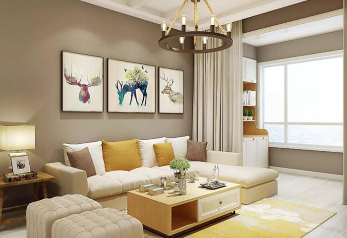 如果覺得沙發(fā)背景墻太單調(diào),可以搭配幾幅掛畫,可以選擇人物畫或山水畫等。加入掛畫后,整個軟裝的檔次都會提升,也能體現(xiàn)主人的品位。