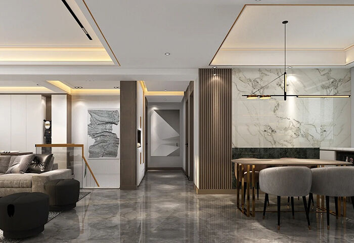 以簡潔、清晰和功能性為特征的室內(nèi)設(shè)計;它主要強調(diào)了空間的簡化和精煉,追求線條簡單、空間通透、色彩明亮、材質(zhì)自然等特點,注重形式與功能的結(jié)合。他們希望有一個時尚、現(xiàn)代的功能性空間,在整個空間的設(shè)計上用了暖灰調(diào)來與簡約的線條感來相呼應(yīng),能改造出一個通透、流暢的空間感。