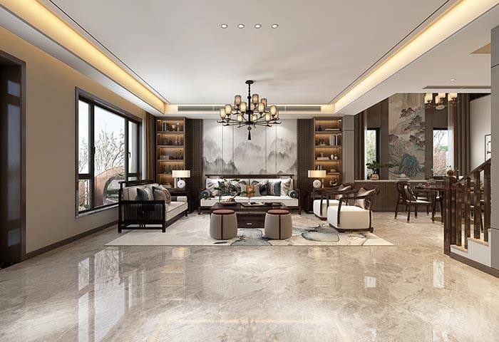 楓林小鎮(zhèn)160㎡聯(lián)排別墅新中式風格裝修案例效果圖