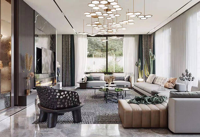 除了前述兩點之外,合理增加人工光源也能為客廳提供明亮的環(huán)境。夜間可以使用較大的吊燈和吸頂燈作為主要照明光源,白天則可以借助臺燈、落地燈、壁燈和射燈來輔助照明。對于日間補光的燈具,最好選擇散射光源,這類燈具產生的光線范圍廣且柔和,不僅適用于整個房間的照明,也可用于局部細小區(qū)域,同時能夠營造出溫馨浪漫的家庭氛圍。