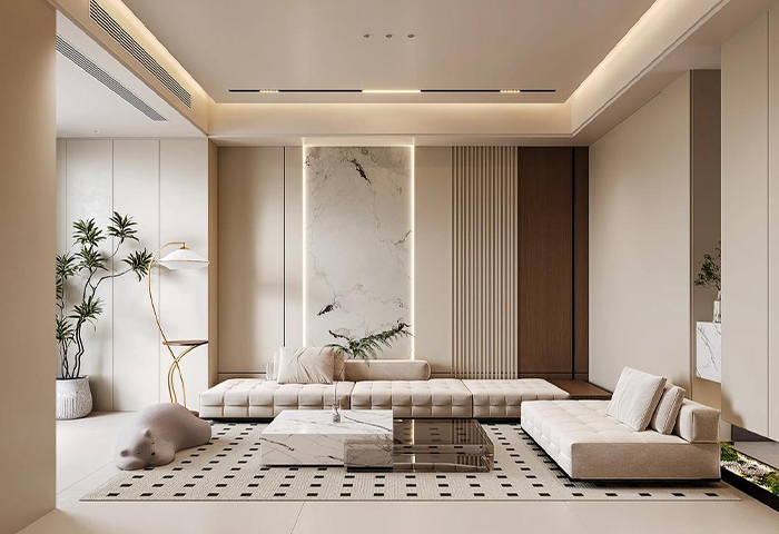 設(shè)計以高品質(zhì),簡單化為理念,設(shè)計出主體簡單大方,并且給人時尚,前衛(wèi),優(yōu)雅,并且還會有溫馨舒適的感覺。與大家比較熟悉的現(xiàn)代風(fēng)格相比,多了幾分品質(zhì)和設(shè)計感;透露生活本真純粹的同時,又融合了奢華和內(nèi)涵的氣質(zhì)。裝修上面更多的會將現(xiàn)代元素的簡約,和古典元素的大氣融合在一起。不管是在硬裝和軟裝的布局設(shè)計方面,還是在色彩圖案的運用方面,都能夠體現(xiàn)這一特點。硬裝會比較偏現(xiàn)代風(fēng),家具和軟裝更加偏向于古典風(fēng),整體給人的感覺是非常時尚,奢華,有品位。