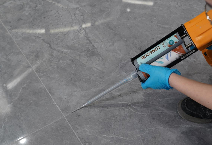 將美縫劑裝入膠槍,擠出前端約30厘米的混合不均勻部分,確保后續(xù)出料均勻飽滿。