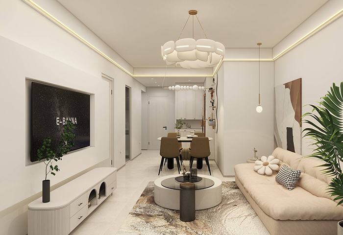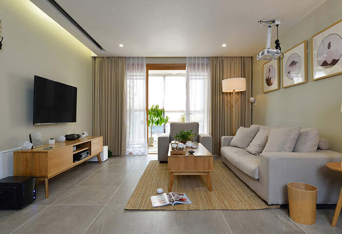 以現(xiàn)代風(fēng)格為主調(diào),主要色彩是米色、淺咖色、白色。在總體布局方面滿足寬敞明亮的需求,注重居室空間的布局與使用功能的完美結(jié)合。整體簡約又不失設(shè)計(jì)感,開放式布局空間聯(lián)通,動線流暢??蛷d米灰色系的沙發(fā),造型簡約,搭配材質(zhì)柔軟的軟裝,使客廳充滿閑話自在的空間氛圍。